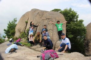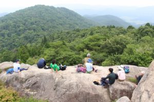 頂上でお弁当を食べてからは、大きな岩の上で景色を満喫。