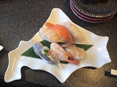 北海道と言ったら魚介でしょ、だったらお寿司でしょ、という短絡的発想が導き出した昼ご飯である。