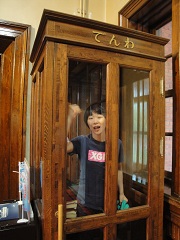 玄関付近の公衆電話ボックスで遊ぶかに。