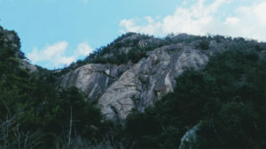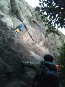 途中、ロッククライマーの練習場に到着