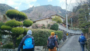 呉ポートピアからテクテクと烏帽子岩山登山口へ移動するまめ登山部一行