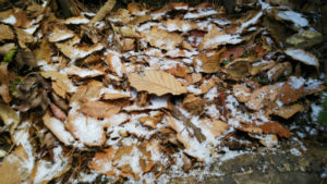 若干雪が残った森を抜け
