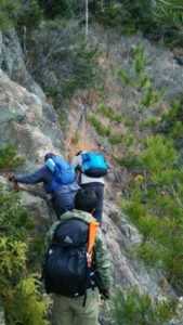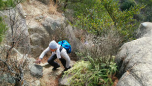 烏帽子岩山は直登ルートもありますが、少し危険なので我々は迂回ルートで山頂を目指します