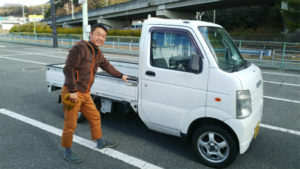 仕事で使っている軽トラで登場!