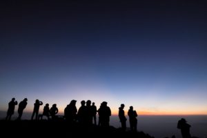 ご来光を見るために朝4時45分頃に小屋の外で集合。