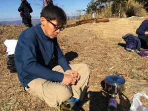 なかなか火がつかないとジェットボイルと戦うきよさん。
