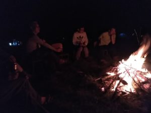 焚き火を前にぎゃあぎゃあわあわあ騒ぐ、