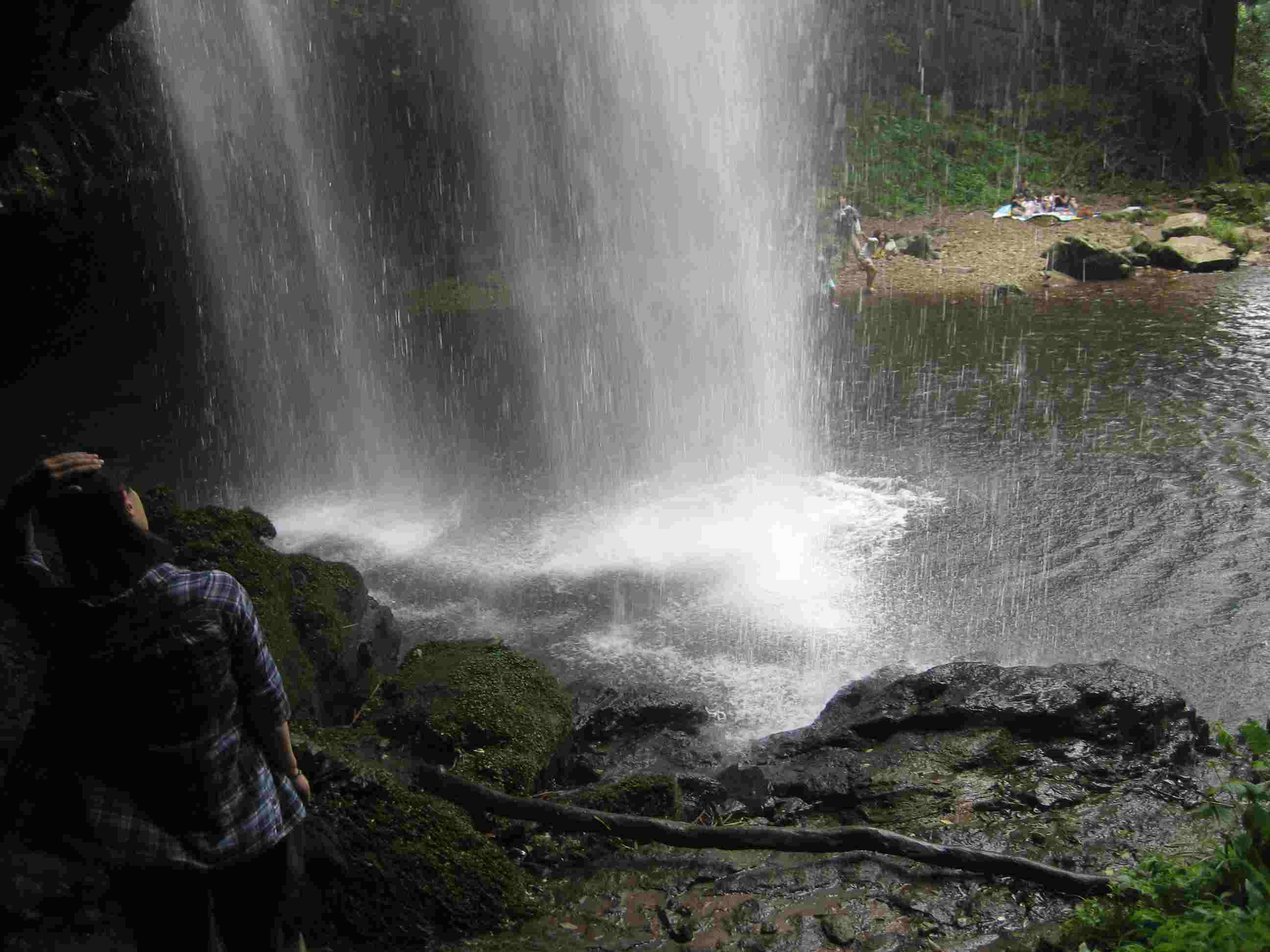 前日の雨で、水量が増えた模様で、流れ落ちる水の量が多く豪快で、滝の下では風圧も受け、滝の裏側では水しぶきが飛び、服が濡れました。・・・すごく気持ち良かったし、迫力も凄かった、最高!