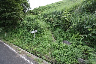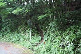 駐車スペースからすぐの道路標識から登山道が始まる。道標は無い。
