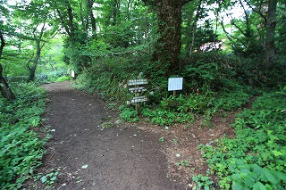 東坂登山口コース、森林鉄道跡コースの分岐点。