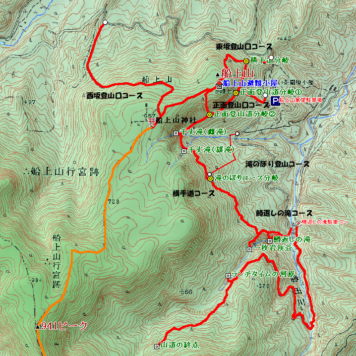 ・船上山登山の一般的なコース。