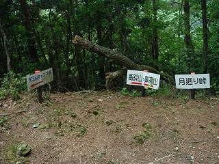 来成峠、鼻高山、月廻り峠の分岐点。
