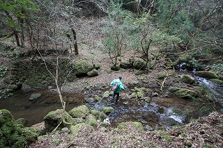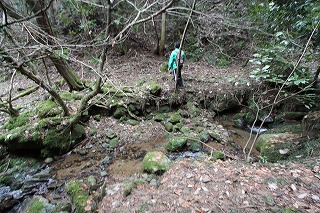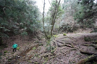 ②川に沿って登って行く。倒木で通行困難な箇所あり。川を何回か渡る。