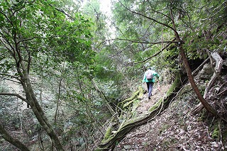 ・ 鰐淵寺から鼻高山へ登る最短コース。スタート直後の崖登りが難関だが、そこさえ越せばとても快適な尾根歩きになる。
