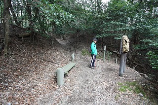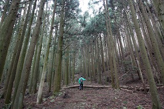 ①駐車場から鰐淵寺へと続く林道途中、仁王門手前に登山口がある。旅伏山方向へ入る。