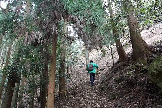 ・ 木無谷(矢尾峠北)コース途中から来成峠参道に入り、鼻高山北稜コースと合流し山頂に行くコース。人通りは少なく、道がはっきりしない箇所があるので赤テープが頼り。鹿に出会う可能性大。