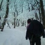 今日は雪が止んで天気も良さそうなので大山に行ってきました。 とっても寒いので無理をしないようにのんびり行く事にします。 雪で白くなったブナ林。 「おーきれい。」 アイゼンを着けてサクサク、サクサク歩きます。